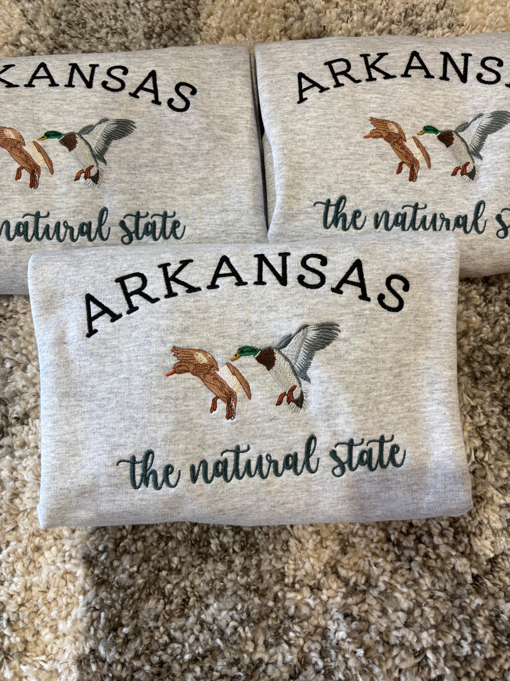 Arkansas Natural State Ducks Embroidered Sweatshirt